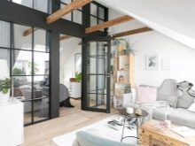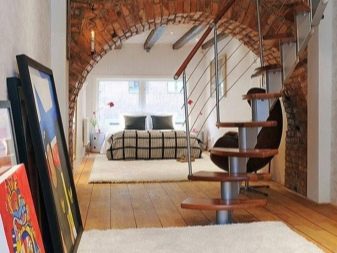 In dieser Richtung werden oft Techniken verwendet, die demonstrativ durch entkoppelte Kommunikation oder Dekoration verlassen werden. Das Hauptmaterial für Böden ist Metall. Mit Hilfe solcher Balken ist es möglich, den Raum in mehrere Zonen aufzuteilen und die Beleuchtung zu installieren.