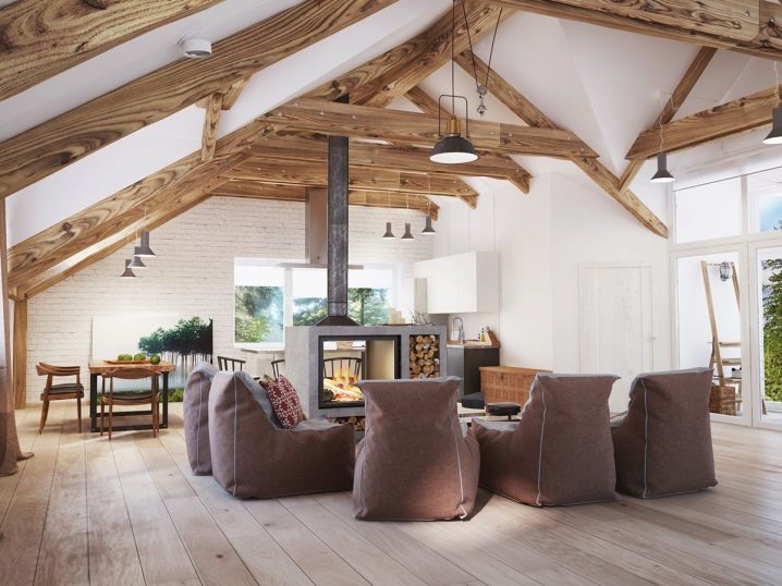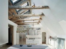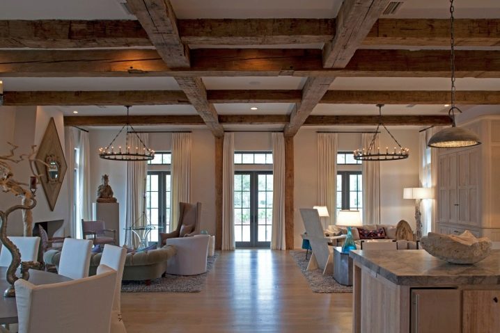 In den alten Zeiten war die Verwendung von Beton oder Holzbalken nur wichtig, um die Decke zu stützen, aber in der modernen Welt ist ihr Zweck eher dekorativ. Sie werden sehr oft verwendet, um Interieurs in Dorf- oder "Nord" -Stilen zu schaffen. Sie sind auch in modernen Bereichen wie Loft oder Hightech relevant.