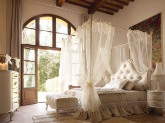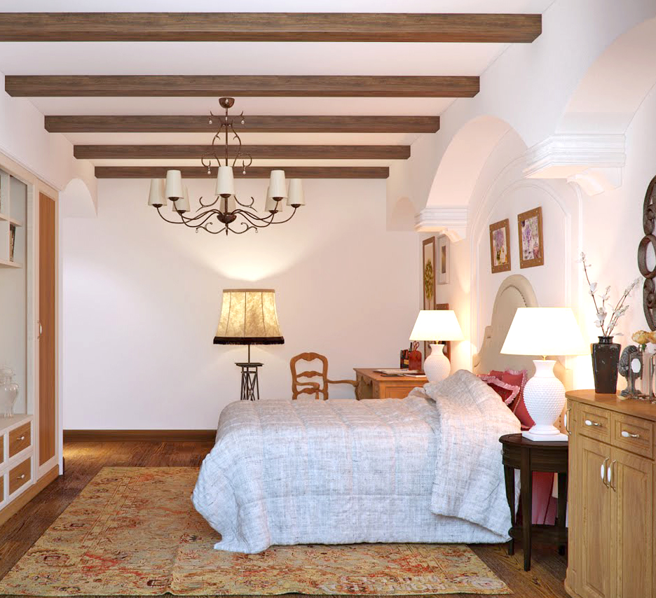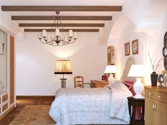 Aber für die Gestaltung von herkömmlichen Schlafzimmern wird ihre Verwendung selten verwendet.Solche Designs sind häufiger in europäischen Ländern. Wenn jedoch die Höhe der Wände im Raum ein Dekor in Form von Balken zulässt, dann sollten Sie diese Möglichkeit nicht vernachlässigen. Sie werden dem Inneren des Schlafzimmers Komfort und Wärme hinzufügen.