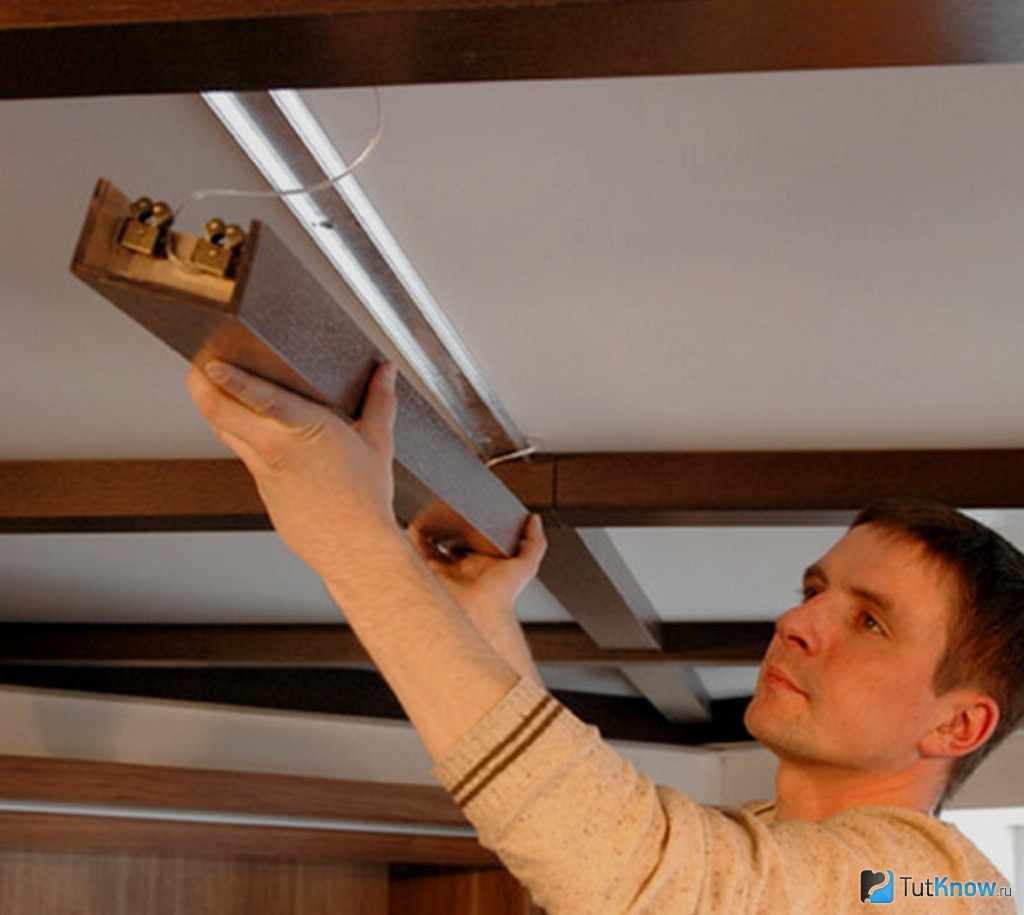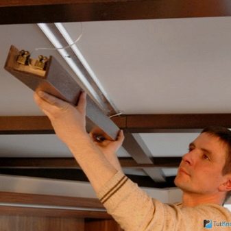 Um die Oberfläche einer modernen Spanndecke mit dekorativen Balken zu dekorieren, ist es notwendig, die Teile zu installieren, die zur Befestigung der Kronleuchter verwendet werden.