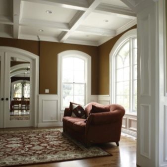 Dekorative Holzbalken werden normalerweise in einem Landhaus installiert, und für die Dekoration von Garagen und Wohnungen ist ihre Nachahmung geeignet - Polyurethanplatten. Sie sind eine stilvolle Dekoration für Häuser mit hohen Decken. Die Balken betonen, dass der Raum so geräumig ist und stützen Sie die tragenden Wände. Sie werden oft verwendet, um den Dachboden oder Dachboden zu unterstützen.Zuvor wurde dieses Design oft auch beim Bau von Häusern verwendet und wurde als einer der wichtigsten Teile des Gebäudes bezeichnet.