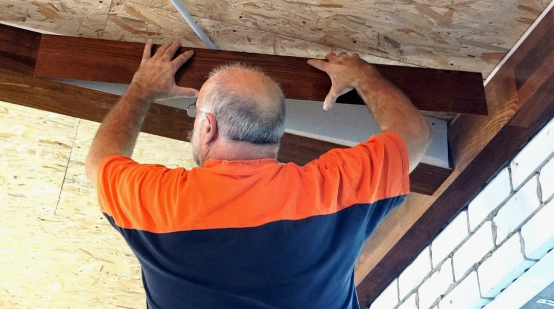 Die Installation von dekorativen Balken an der Decke wird im Video unten gezeigt.