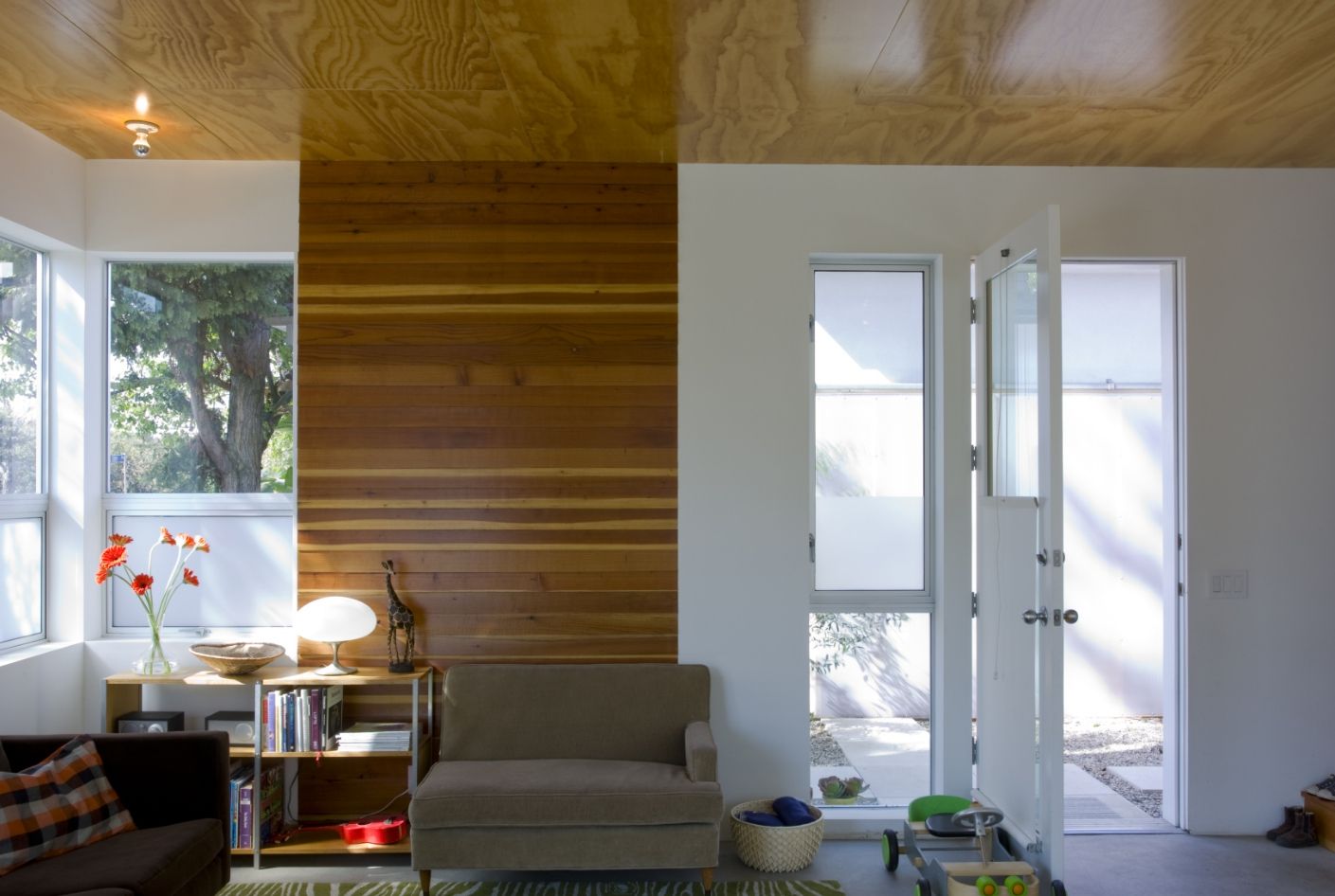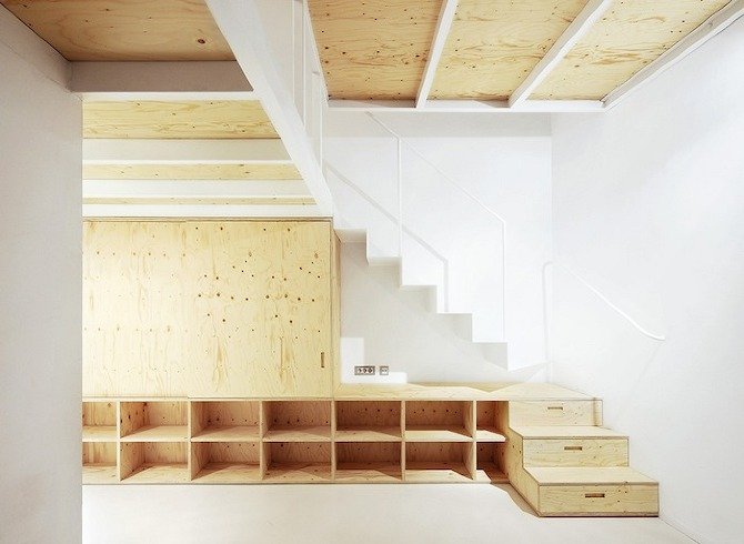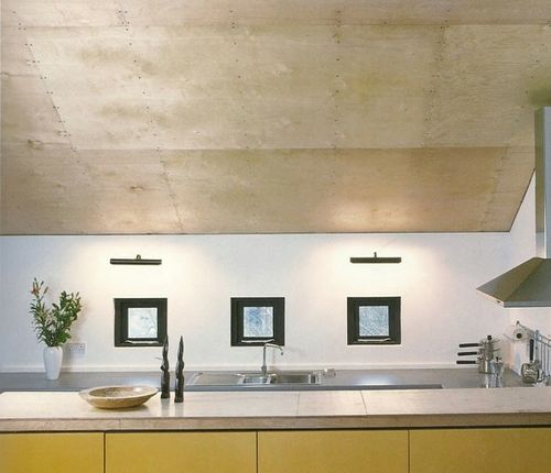 - Oft wird aus der Sperrholzdecke ein origineller, wirkungsvoller Sockel gewählt.