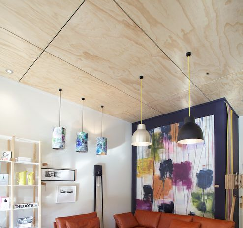 Decken aus Sperrholz oder OSB sind in Wirtschaftszentren, Gaststätten, privaten Haushalten zu finden.Sperrholz hat keine so große Popularität wie Trockenbau, sondern kann auf die Probleme der Werbe- und Marketingtechnologien zurückgeführt werden.