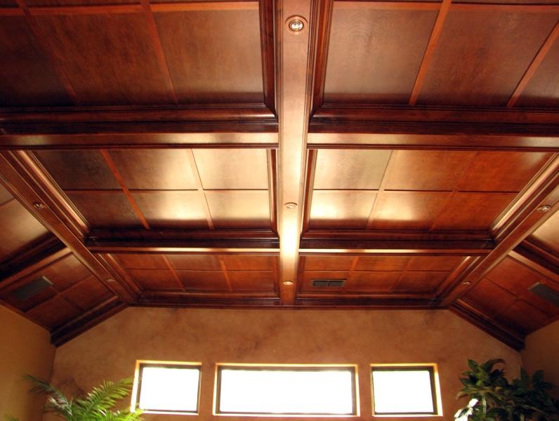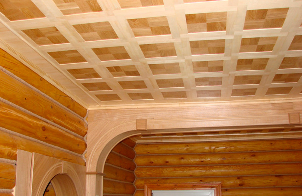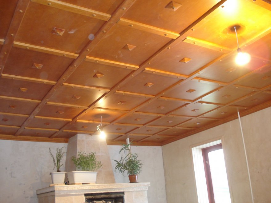 - Sperrholzdecke, in Quadraten ausgekleidet, sieht sehr stilvoll und elegant aus.