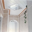 - PVC-Platten oft verwendet als Deckenverkleidung. Diese Methode erfordert keine großen finanziellen Kosten, es spart Ihnen Zeit und Mühe.