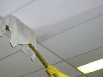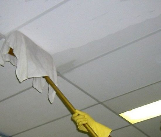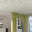 - PVC-Decke erfordert keine speziellen Pflegemethoden. Es wird empfohlen, in regelmäßigen Abständen ein in Seifenwasser getränktes weiches Tuch zu verwenden, um das Paneel von Schmutz oder Staub zu befreien. Es ist nur verboten, Lösungen anzuwenden, die abrasive Partikel oder aggressive Alkalien und Säuren enthalten.