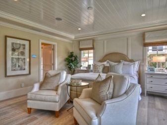 - Damit die Decke optisch höher aussieht, als sie wirklich ist, sollten Sie sie bevorzugen Kunststoffplatten mit hellen Farbtönen. Blätter mit dunkler Farbe "fressen" möglicherweise die Höhe des Raumes auf und das Publikum hat ein Gefühl von Druck.