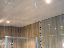 - Geringe Feuchtigkeitsbeständigkeit. In Räumen mit hoher Luftfeuchtigkeit sollten die Decken am besten nicht verlegt werden, da sich die Platten unter dem Einfluss von Kondensat und Rauchgasen verformen und sich verformen können. Für solche Räume ist es wünschenswert, die Auskleidung aus Kunststoff zu wählen. Wenn das Design ein Holzbrett liefert, muss es mit Schutzlack bedeckt werden.