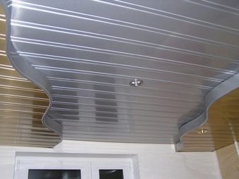 Die Decke der Schindel kann als einstöckiges Gebäude installiert werden und komplexe Strukturen aus mehreren Ebenen entwerfen. Der Unterschied zwischen den Modellen der Federungssysteme besteht nur in der Montage des Rahmens. Deckenverkleidungsschindel hat viele Vorteile, die einschließen:
