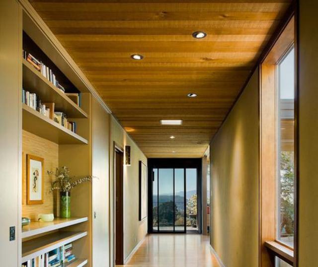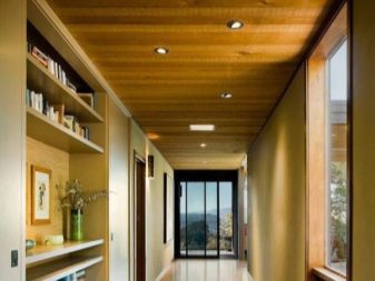 Sie können Deckenschindel und in den Fluren dekorieren. Um das Design schön aussehen zu lassen, können Sie ihm Glanz mit Lack und Beize verleihen. Da die Korridore klein sind, sollten sie für ihre Haut den natürlicheren und helleren Farbtönen vorgezogen werden - dadurch wird dieses Finish mit den übrigen Designdetails harmonieren.