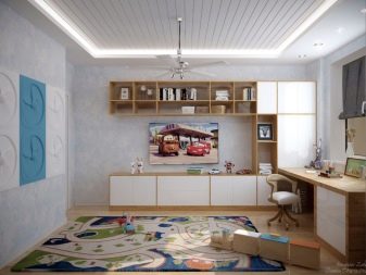 Darüber hinaus kann Schindel Decken und in den Büros, sowie Kinderzimmern umhüllen. Für diese Räume ist es wünschenswert, ein Gestellmodell der Struktur zu wählen, das nicht aus vielen Ebenen besteht. Solche Decken sind ideal für Räume in Holzhäusern, da sie ein einziges Bild schaffen.
