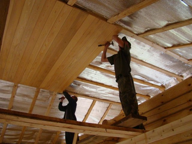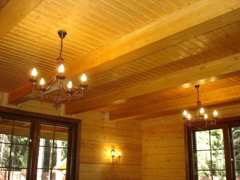Die Decke in der Wohnung ist in der Regel mit Nadelholzplatten verkleidet - sie zeichnen sich durch eine schöne Struktur und Muster aus, widerstehen mechanischen Belastungen und verleihen dem Raum ein angenehmes Aroma.