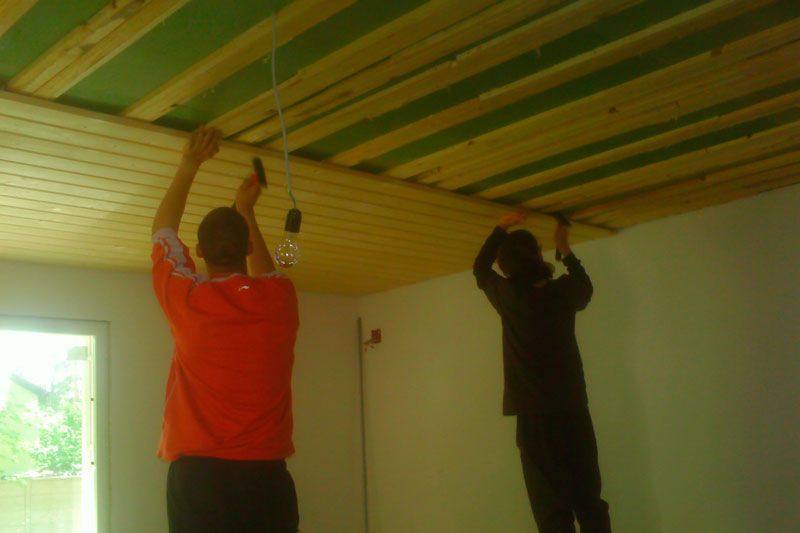 - Es ist ratsam, die Decke von den Ecken bis zur Mitte zu ummanteln.