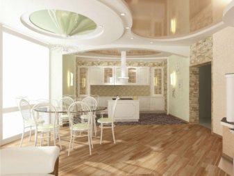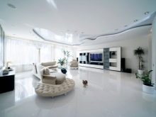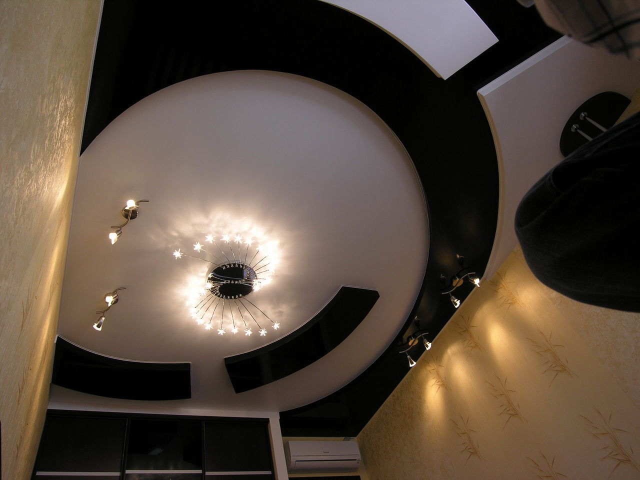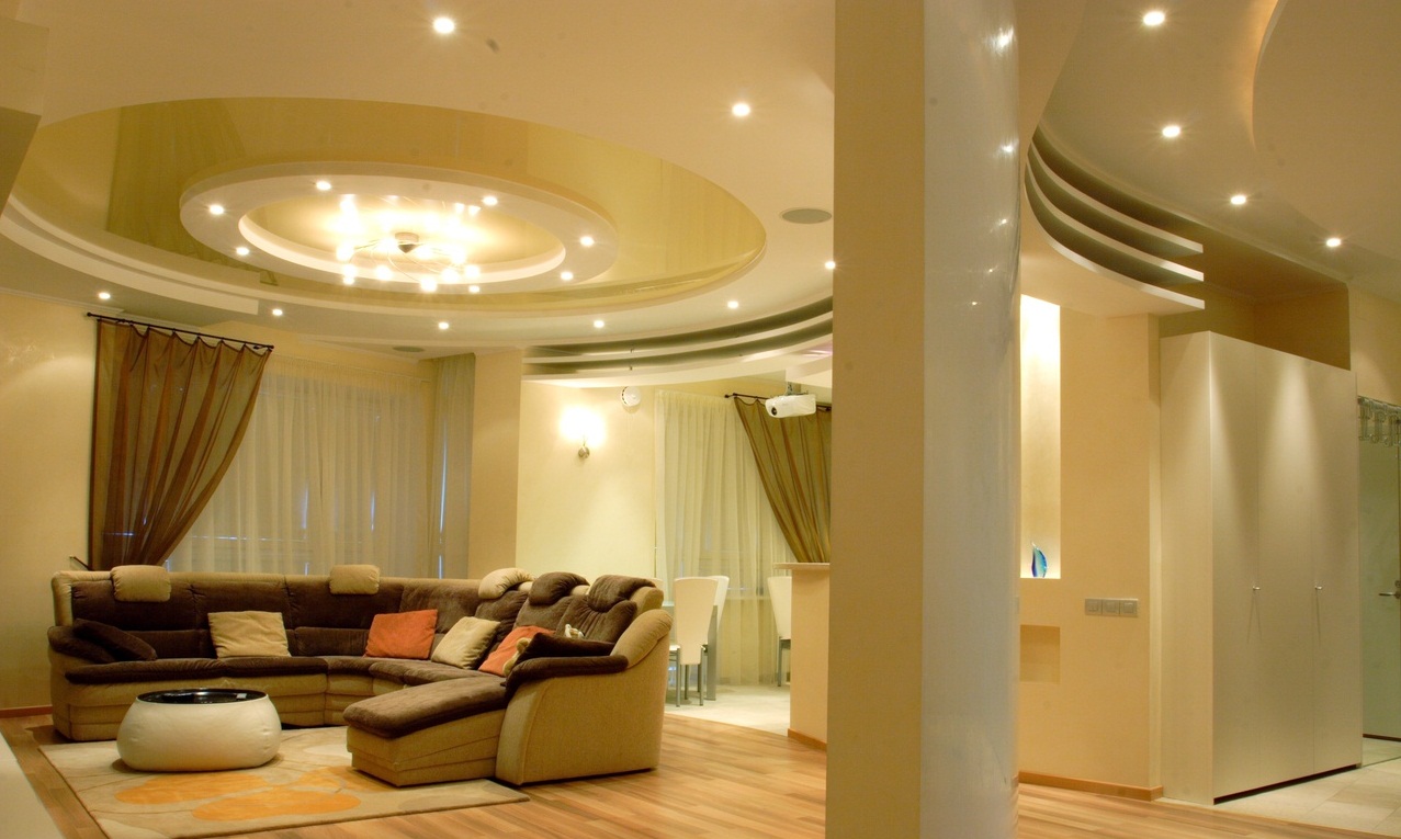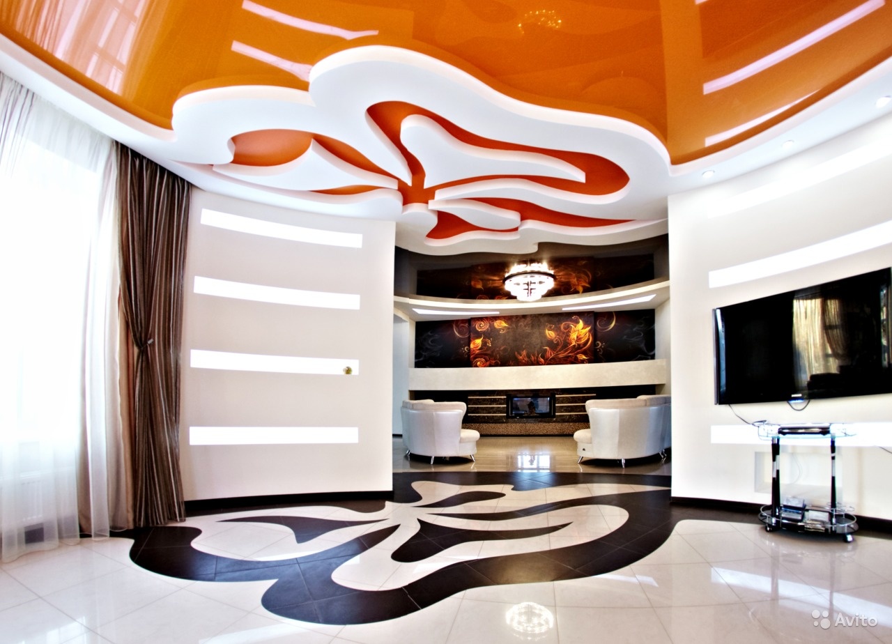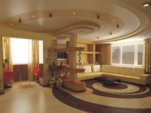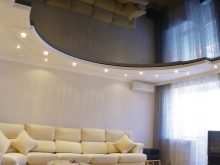 Multi-Level-Decken unterscheiden sich nicht nur in der Anzahl der Ebenen, sondern auch in der Gestaltung und Komplexität der Installationsarbeiten. Zum Beispiel können Sie ein einfaches Design von zwei Ebenen installieren, es ist die Grundlage der gestreckten Leinwand zu machen, oder die Decke der gebogenen Teile dekorieren, für die Registrierung von vielen Farben anwenden.