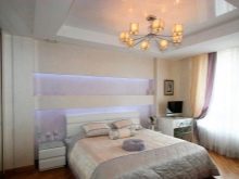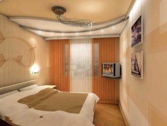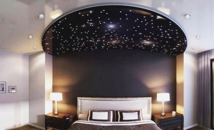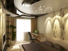 Es ist interessant zu sehen, in den Schlafzimmern zweistöckige Konstruktionen mit dem "Sternenhimmel" Effekt oder mit geometrischen Formen in Form von Blumen verziert.