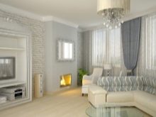 - Ändern der Geometrie von Räumen. Durch die Präsenz in der Zusammensetzung der geschwungenen Linien und Formen können Sie visuell den Raum im Raum vergrößern und verbergen ihre Grenzen.