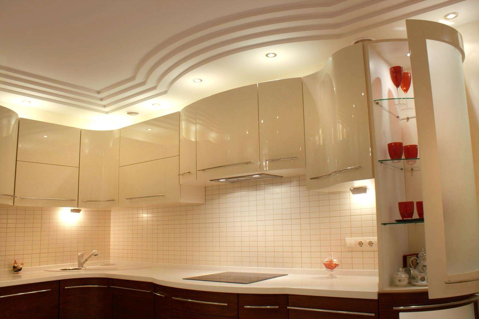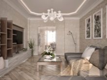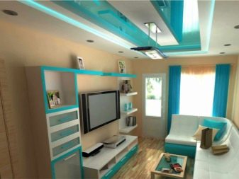 Im Gegensatz zu früheren Arten von Multi-Level-Strukturen sind durch ungewöhnliche Linien und Formen gekennzeichnet. In kleinen Räumen sind solche Decken in Form von Wellen und geraden Stufen installiert.. Sie reduzieren nicht die Höhe des Raumes und wiederholen ursprünglich die Form der Möbel und des Bodenbelags.