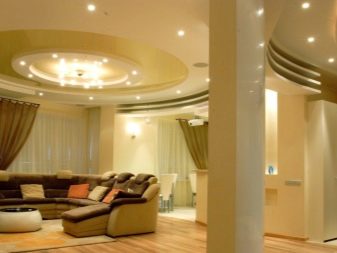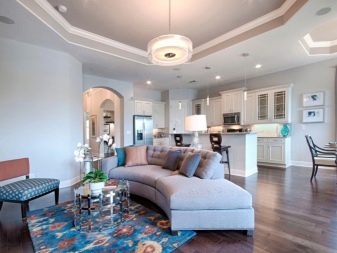 - Funktionale Raumtrennung. In vielen Häusern, Wohnbereich, das nicht erlaubt Innenwände der Installation, eine Multi-Level-Decken mit Zoning kann getan werden.