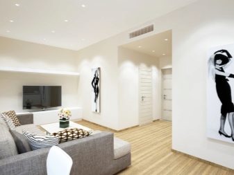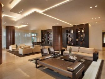 Einstufige Designs eignen sich gut für die Gestaltung von Küchen, Passanten, Schlafzimmern. Sie finden sich im Inneren von Hotels, Konferenzräumen und Büros.