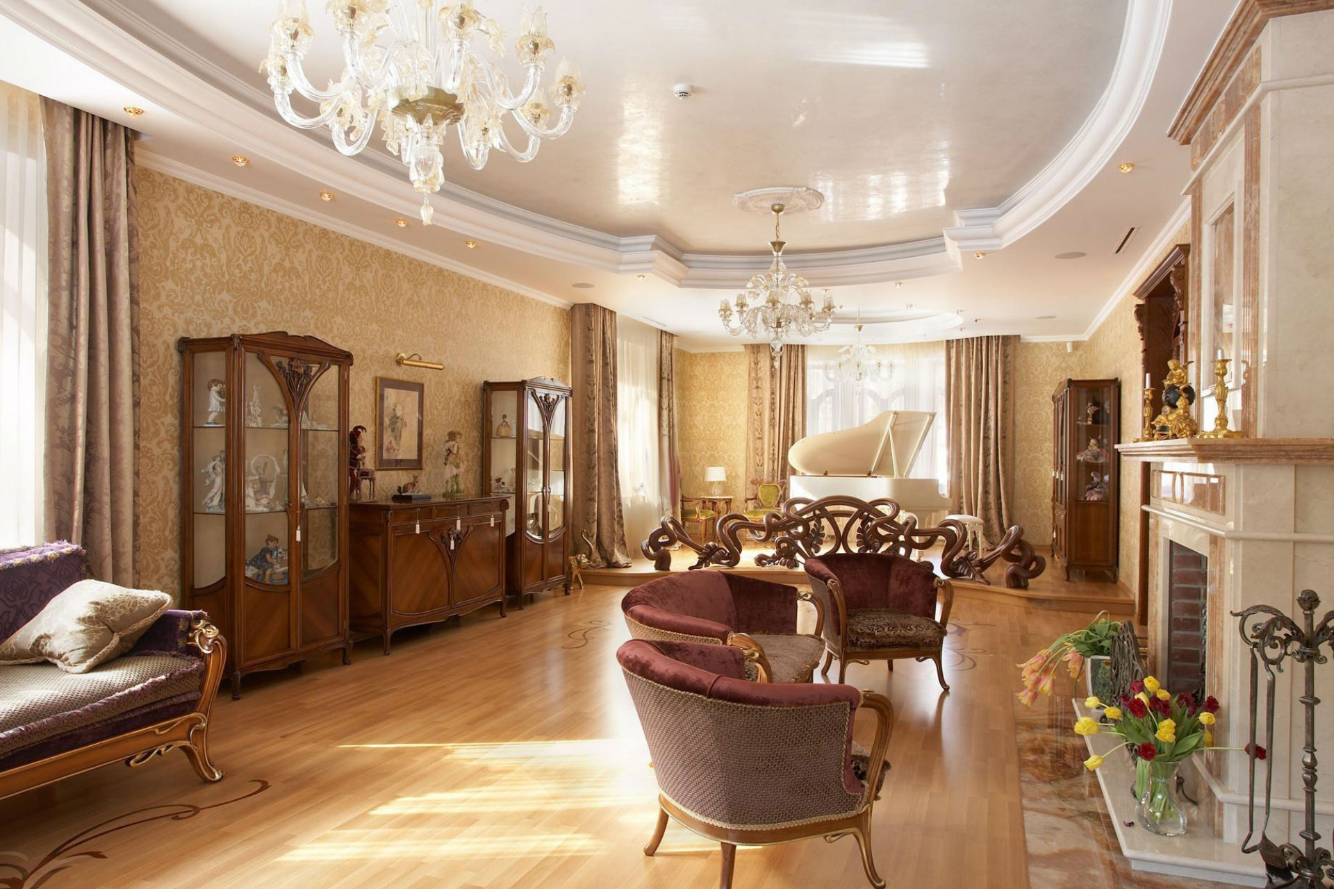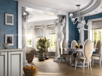 Für Kompositionen im Jugendstil empfiehlt es sich, gleichzeitig Malerei mit Stuck zu kombinieren und ovale Rillen in die Entwürfe zu setzen, die im Flur, Wohn- und Schlafzimmer platziert werden können.