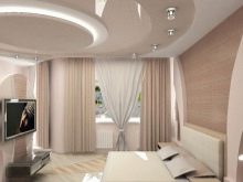 Jeder von ihnen hat seine Plus- und Minuspunkte. Allerdings können abgehängte Decken nach anderen Merkmalen klassifiziert werden. Sie können ein- und mehrstufig, flach und krummlinig sein.