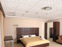 Rack-Typ sorgt für eine optimale Belüftung des Raumes. Die Platten sind beständig gegen Schimmel, Pilze, Korrosion, sehr langlebig und halten lange. Zu den Merkmalen dieser Art von abgehängten Decken gehört die Unverträglichkeit mit niedrigen Decken. Sie benötigen mindestens zehn Zentimeter von der Gesamthöhe und sollten daher nur in Schlafzimmern mit hohen Decken installiert werden.