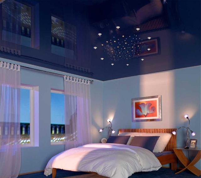 Es sollte angemerkt werden, dass Klebstoffdecken nicht mehr so stark nachgefragt sind wie zuvor. Moderne Designlösungen stehen nicht still, und jedes Jahr gibt es immer mehr Möglichkeiten, die Decke im Schlafzimmer zu dekorieren.