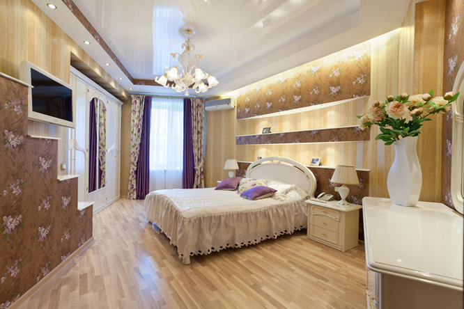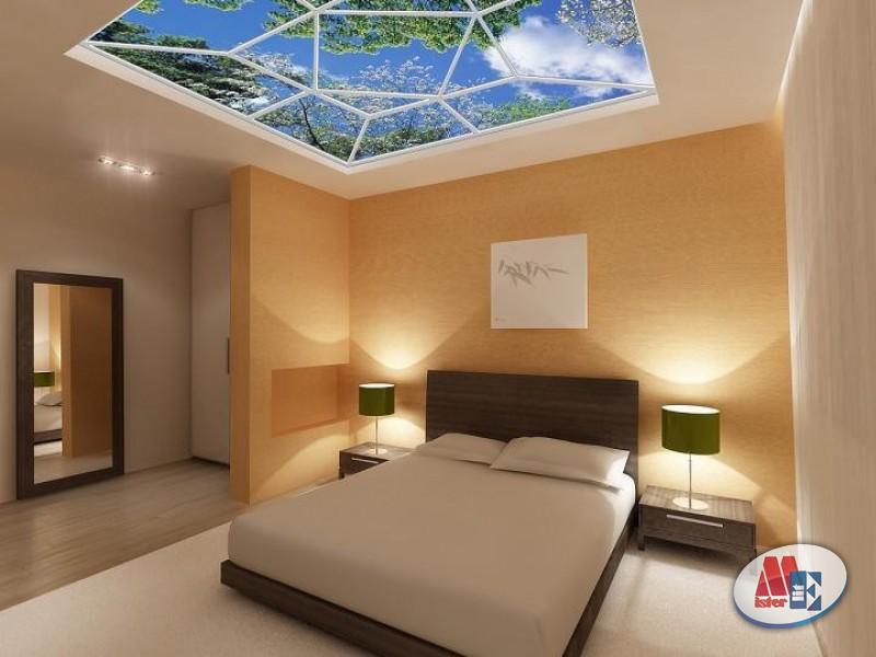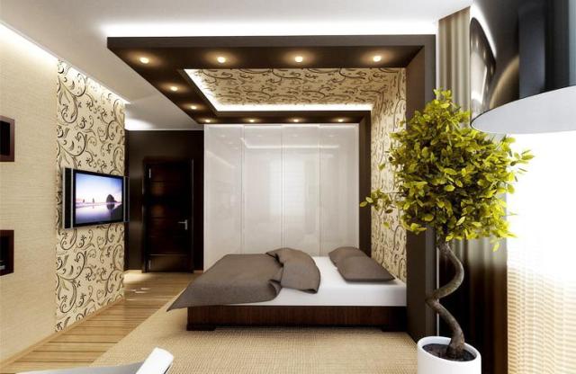 Abgehängte Decken sind in mehrere Typen unterteilt. Für das Schlafzimmer gibt es vier Arten: