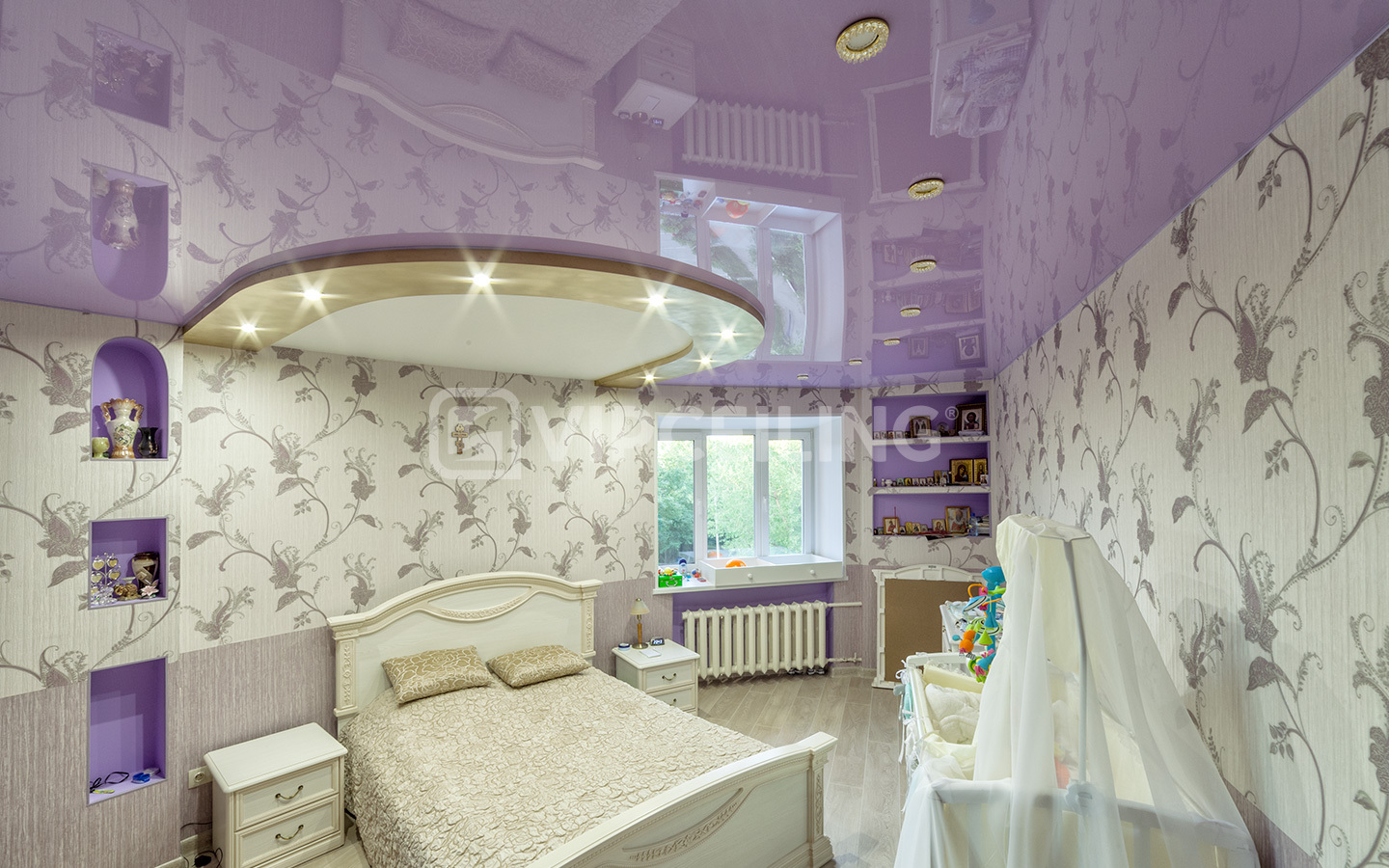 Einige Unterarten leuchten, schaffen eine verspiegelte Oberfläche und vergrößern optisch den Raum, andere haben einen satten, matten Farbton, der dem Raum ein edles Aussehen verleiht.Mit Hilfe von Zeichnungen oder Drucken können Sie exklusive Decken erstellen, die Ihnen helfen, an jeden Ort auf dem Planeten zu ziehen, sei es chic Inseln, romantisches Frankreich oder helles Indien.