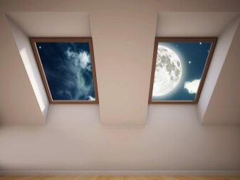In den Mansardenzimmern entscheidet sich nicht jeder, Oberlichter für zusätzliches Licht zu bauen. In diesem Fall können Sie mit einer versteckten Hintergrundbeleuchtung und durchscheinendem Glas ein falsches Fenster ausstatten. Es sorgt für zusätzliche Beleuchtung und bringt Frische ins Innere. Die schräg gelegene Decke hört auf zu "drücken".