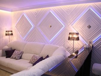 Der einzige Punkt, auf den man achten muss, ist Wahl der Lichtfarbe. Wenn Sie auf den Lampen von ungewöhnlichen Farben wie Rot, Rosa, Grün und anderen bleiben wollen, denken Sie über die Möglichkeit nach, sich mit gewöhnlichem Licht zu wechseln oder zu wechseln. Was zunächst spektakulär und ungewöhnlich erscheint, beginnt zu irritieren und zu ermüden.