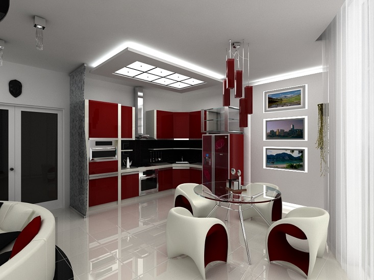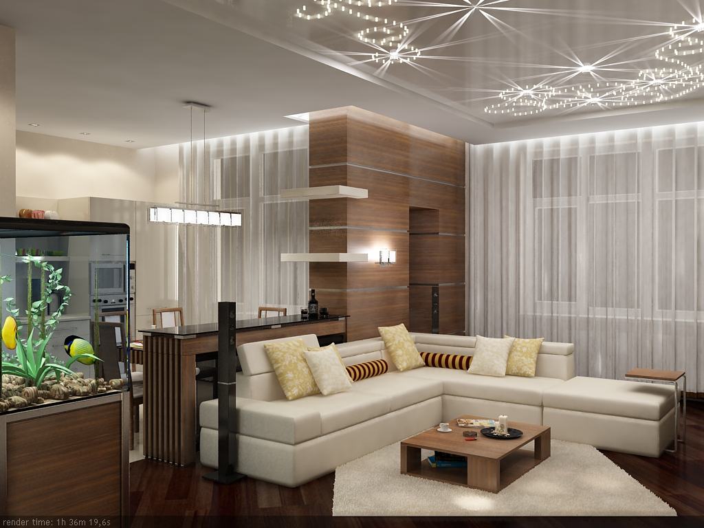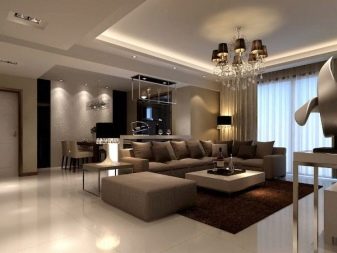 - dekorative Lichter erfüllen perfekt die Funktion der Zoneneinteilung. Mit seiner Hilfe können Sie den Essbereich, einen Ort zum Ausruhen, wählenDesktop und andere Ecken der Wohnung;