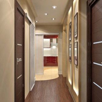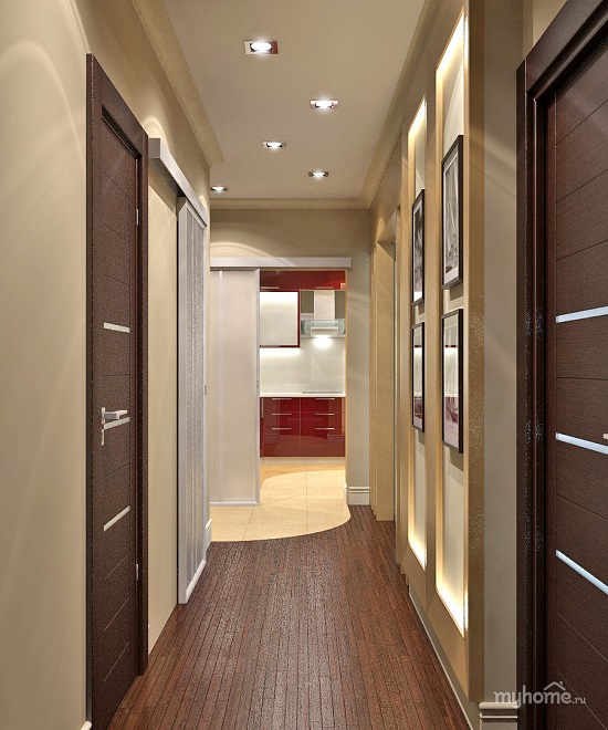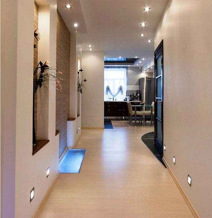 In der Halle und im Korridor sorgen Scheinwerfer für eine ausreichende und ausreichende Beleuchtung.