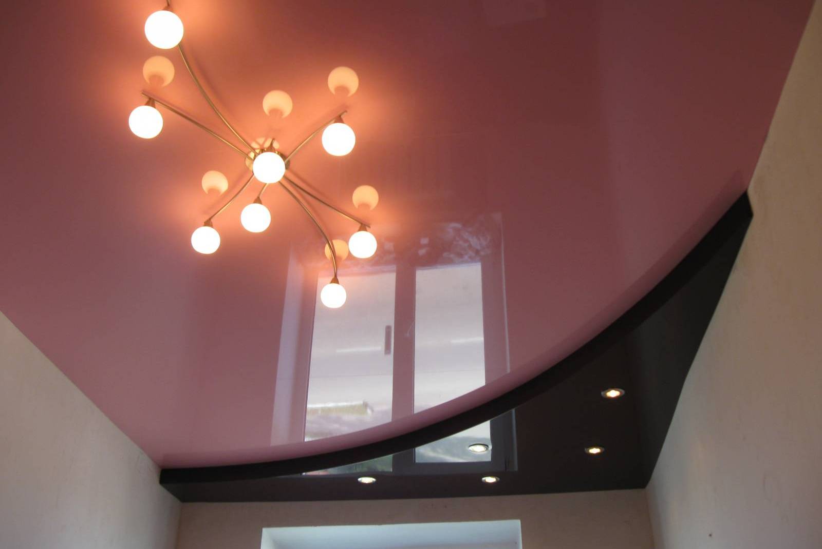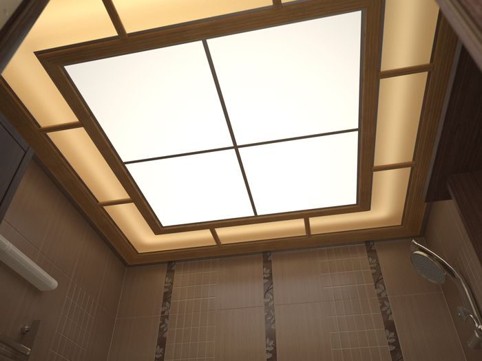 Der zweite Typ ist Deckenleuchter. Sie sind an der Decke auf Plattformen befestigt, haben eine große Auswahl und eignen sich für niedrige Wände. Heutzutage werden LED-Produkte populär, die sich durch erhöhte Lebensdauer ohne Demontage auszeichnen.