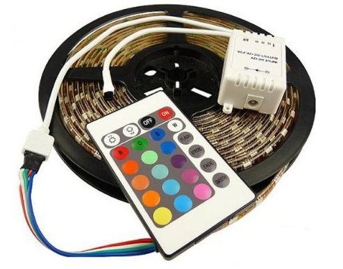 Der erste Typ einer flexiblen Leuchte ist ein Band, das aus einer Folge von LEDs besteht. Es gibt zwei Hauptvarianten: SMD und RGB. Sie unterscheiden sich dadurch, dass SMD-Bänder monochrom sind und in weiß, blau, rot und grün vorkommen. Und der zweite Typ ist mehrfarbig (eine Kombination aus Rot, Grün und Blau). Meistens wird das Band von einem Bedienfeld begleitet, das regelt, welche Farbe eingeschaltet ist, wie viele LEDs eingeschaltet sind und wie intensiv das Licht leuchtet.