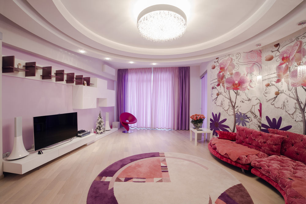 - Spanndecken die begehrteste Art des Finishs. Die Kunden werden von den Möglichkeiten zur Gestaltung solcher Beschichtungen angezogen. PVC-Folie wird auf den Träger gestreckt, wodurch eine perfekt glatte und ebene Oberfläche entsteht. Mit Hilfe von Fotodrucktechniken kann jedes Muster auf die Leinwand aufgetragen werden: Blumen, Himmel,Sterne, Scheidungen, Landschaften und sogar 3D-Installationen. Die Farbe kann auch tief und gesättigt und hell und pastell sein.