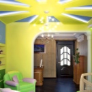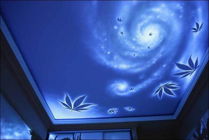 Sie können die gesamte Decke oder ihre Einzelteile bemalen, ein Muster erzeugen oder dekorative Elemente betonen. Getönten oberen Teil der Wände in einer Farbe mit der Decke, können Sie einen visuellen Effekt der Tiefe des Raumes erstellen.