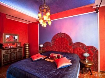 Oft sind die Schlafzimmer mit textilen Vorhängen in Form von Segeln, Wellen, Stolen dekoriert. Textilien sammeln jedoch schnell Staub und müssen daher oft entfernt werden, was sich im Laufe der Zeit nachteilig auf Befestigungen und Trockenbau an den Fugen auswirken kann.