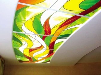 Eine der kreativen Möglichkeiten, den Deckenraum zu dekorieren, ist die Installation einer Glasdecke. Es ist ein Aufhängerahmen, auf dem transluzentes Acryl montiert ist. Solch eine Decke zeichnet sich durch hohe Haltbarkeit aus, sie hat auch vor unvorsichtigen Schlägen keine Angst. In Kombination mit dem klassischen Kronleuchter wird die Glasdecke einfach toll aussehen.Und durchscheinende Teller, die von der Lampe scheinen, werden den Raum mit einem angenehmen Schimmer füllen.