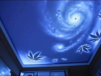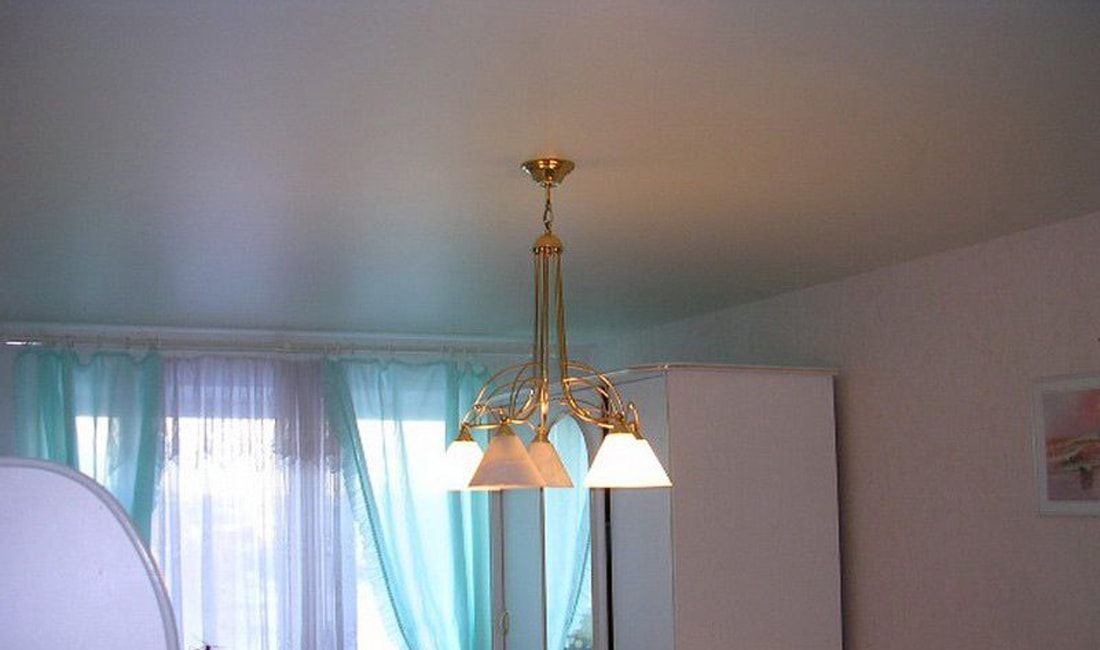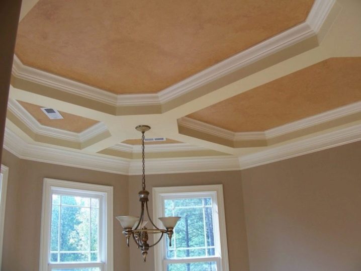 Die Malerei ist seit langem ein klassisches Design der Deckenfläche. Normalerweise ist die Oberfläche in einer zarten Farbe mit Wasserfarbe gemalt.Eine solche Berichterstattung kann heute nicht als modern bezeichnet werden. Um den Raum etwas zu verbessern, kann der Umfang der Decke sein Paste über Baguettes für einen halben Ton heller oder dunkler als die gewählte Farbe.