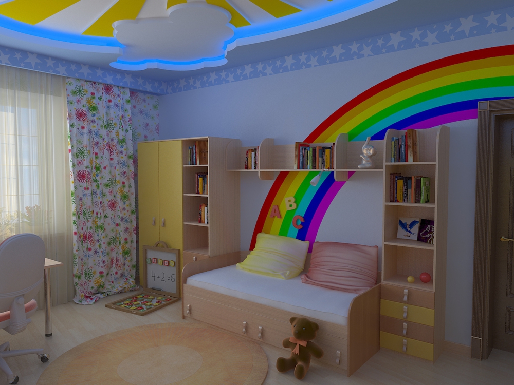 Das ganze Design des Kinderzimmers sollte das Kind dazu anregen, sich zu entwickeln, in ihm den Wunsch zu wecken, etwas über die Welt zu lernen.