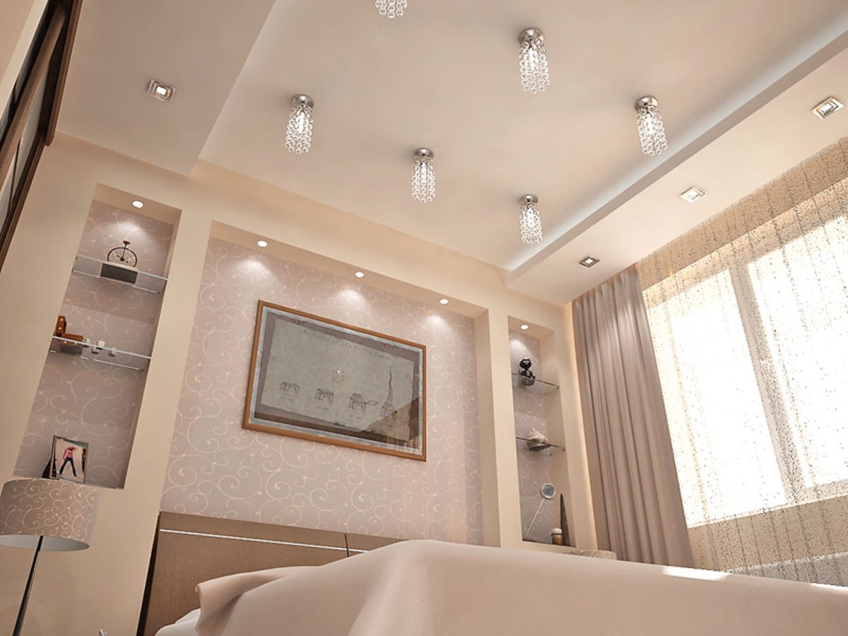 Es gibt einige der gebräuchlichsten Arten, den Deckenraum im Schlafzimmer anzuordnen.