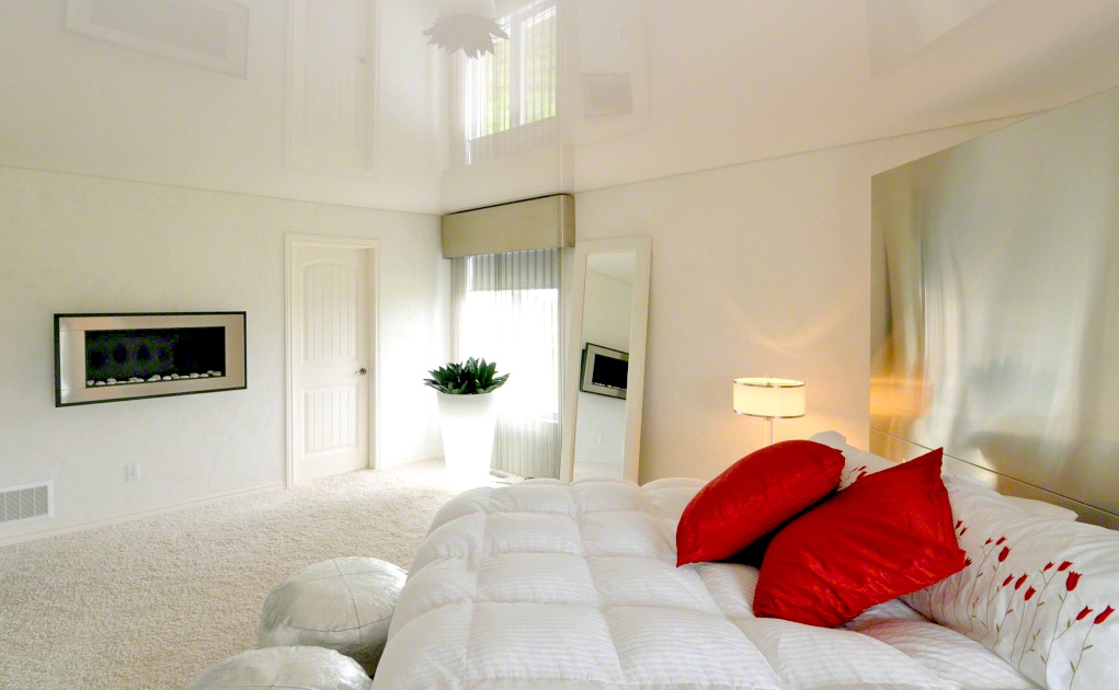 Spanndecken helfen nicht nur, Reparaturen zu vereinfachen, sondern auch das Bild des Raumes anzupassen, eine romantische Atmosphäre zu schaffen oder dem Schlafzimmer aristokratische Strenge zu verleihen.
