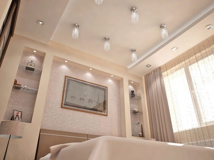 Mehrstöckige Decken im Schlafzimmer können mit dekorativen Elementen wie: