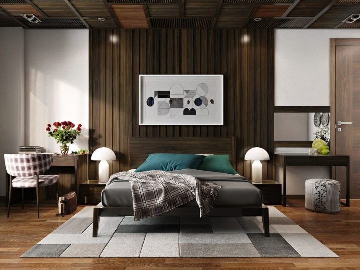 Holz war schon immer ein Zeichen für ein luxuriöses Interieur. Original Holzpaneele sind eine großartige Möglichkeit, ein einzigartiges Schlafzimmer in einem Land oder modernen Stil zu schaffen. Darüber hinaus ist natürliches Holz ein ausgezeichnetes Element, um ein Interieur in Ecostyle zu schaffen. Holzimitatplatten können verwendet werden. - qualitativ hochwertige Leistung wird nicht schlechter als das Original aussehen.