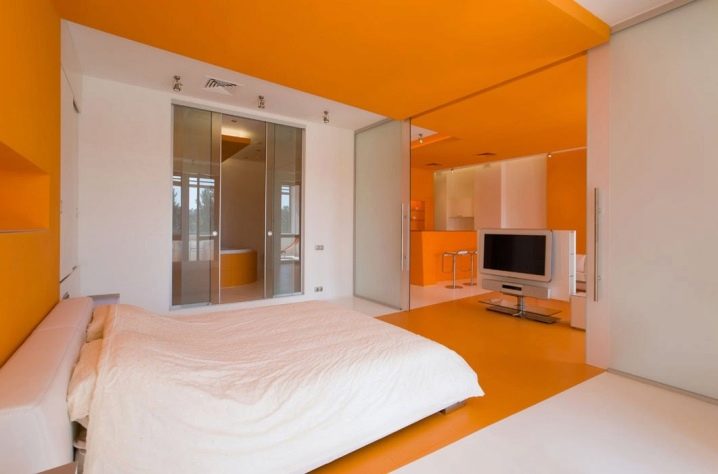 Alle Farben können in warm und kalt unterteilt werden. Die ersten sind alle Schattierungen von Rot, Orange und Gelb. Wenn Decken mit Farben von warmen Tönen gemalt werden, "fällt" ihre Oberfläche ein paar Zentimeter nach unten. Dies liegt an der Tatsache, dass warme Farbtöne den Effekt der Annäherung haben und alle Oberflächen näher erscheinen.