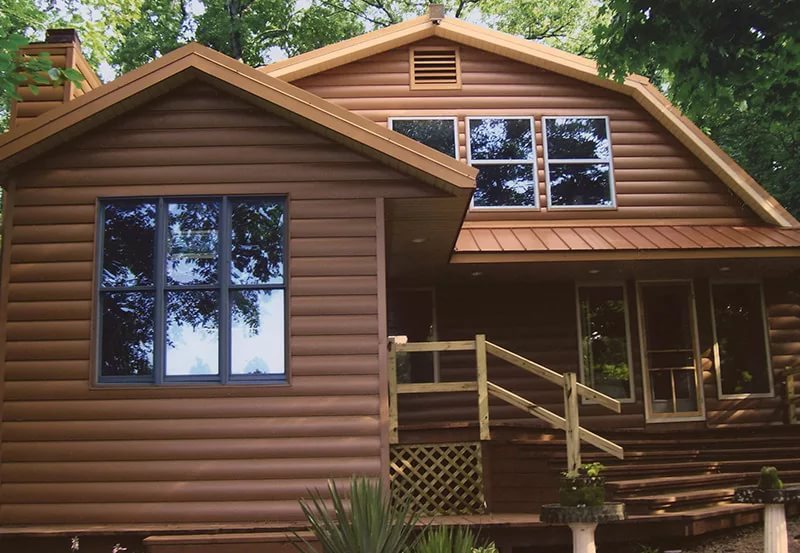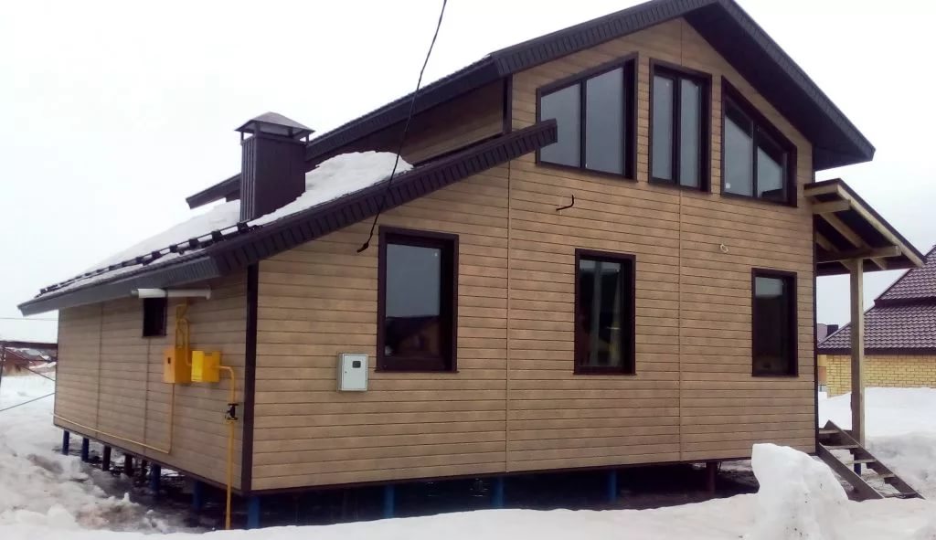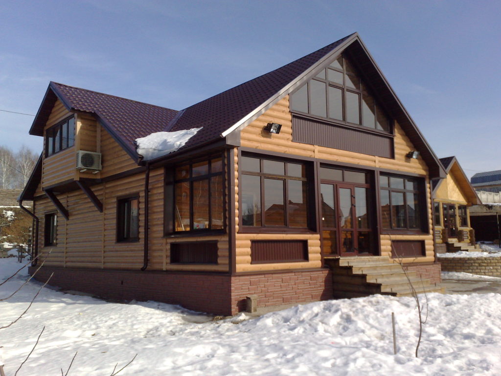 Ein mit solchem Material geschmücktes Haus imitiert eine Holzkonstruktion oder ein Blockhaus und ermöglicht es, den Bau eines echten Holzhauses zu retten.