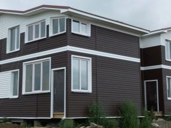 - Ausgezeichnete Kompatibilität mit anderen Materialien.Selten wenn nur eine Option für die Fassade gewählt wird. Eine harmonische Kombination von Materialien unterschiedlicher Textur, Farbe und Eigenschaften ermöglicht eine originellere und hochwertigere Auskleidung des Gebäudes. Vinyl ist wie kein anderes Material ideal für die Kombination mit Holz, Beton, Ziegeln, Metall und so weiter.