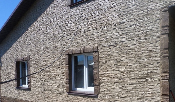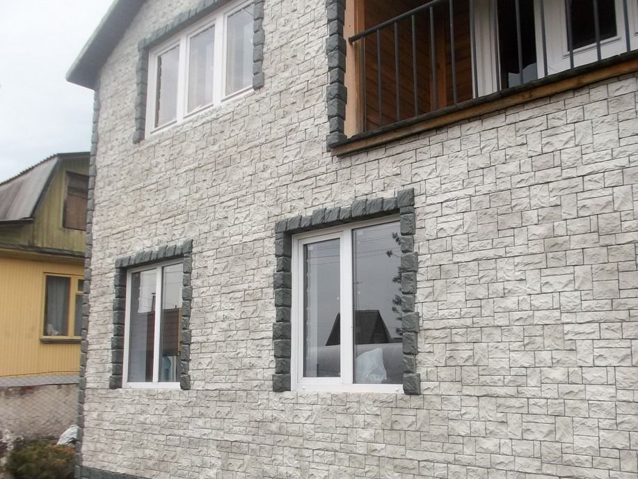 - Der Stein ist groß. Diese Option eignet sich hervorragend für Gesamtgebäude und -strukturen. Das mit solchen Tafeln verzierte Haus wirkt sehr zuverlässig und eindrucksvoll. Beliebte Farben: weiß beschichtet, braun.